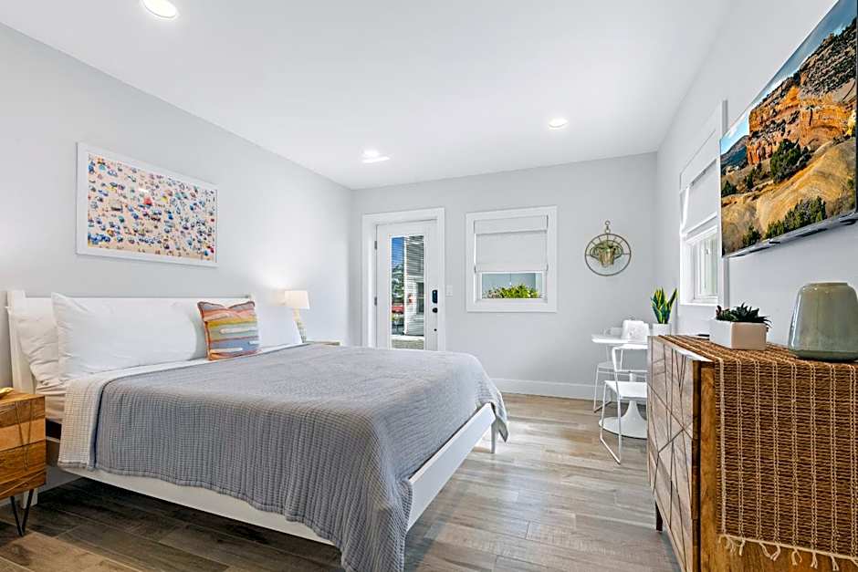 This room with 1 queen bed has a small refrigerator, microwave and coffee maker.
